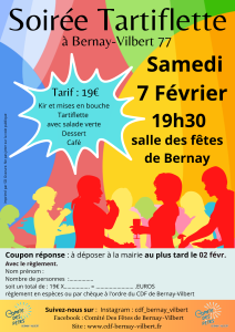 Le Comité des Fêtes organise une Soirée 🧀 TARTIFLETTE 🧀